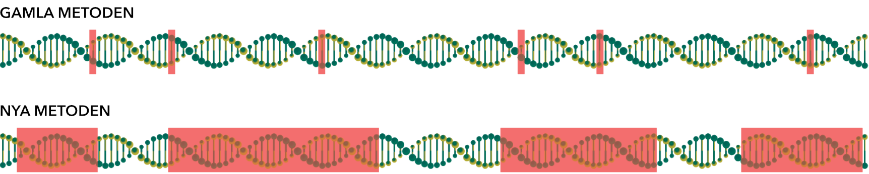 Den nya tekniken gör något annat: den läser faktiskt av de delar av arvsmassan som är viktigast för släktforskning. Inte bara enstaka punkter, utan långa sträckor i DNA-koden - hela 280 miljoner punkter